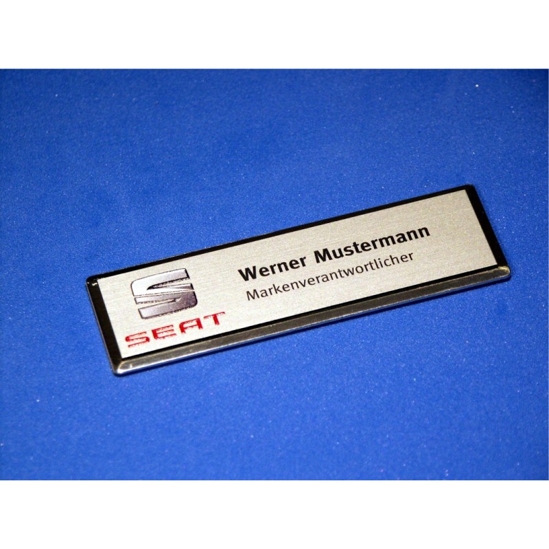 Namensschild mit Metallträger 75x23mm silber glänzend
